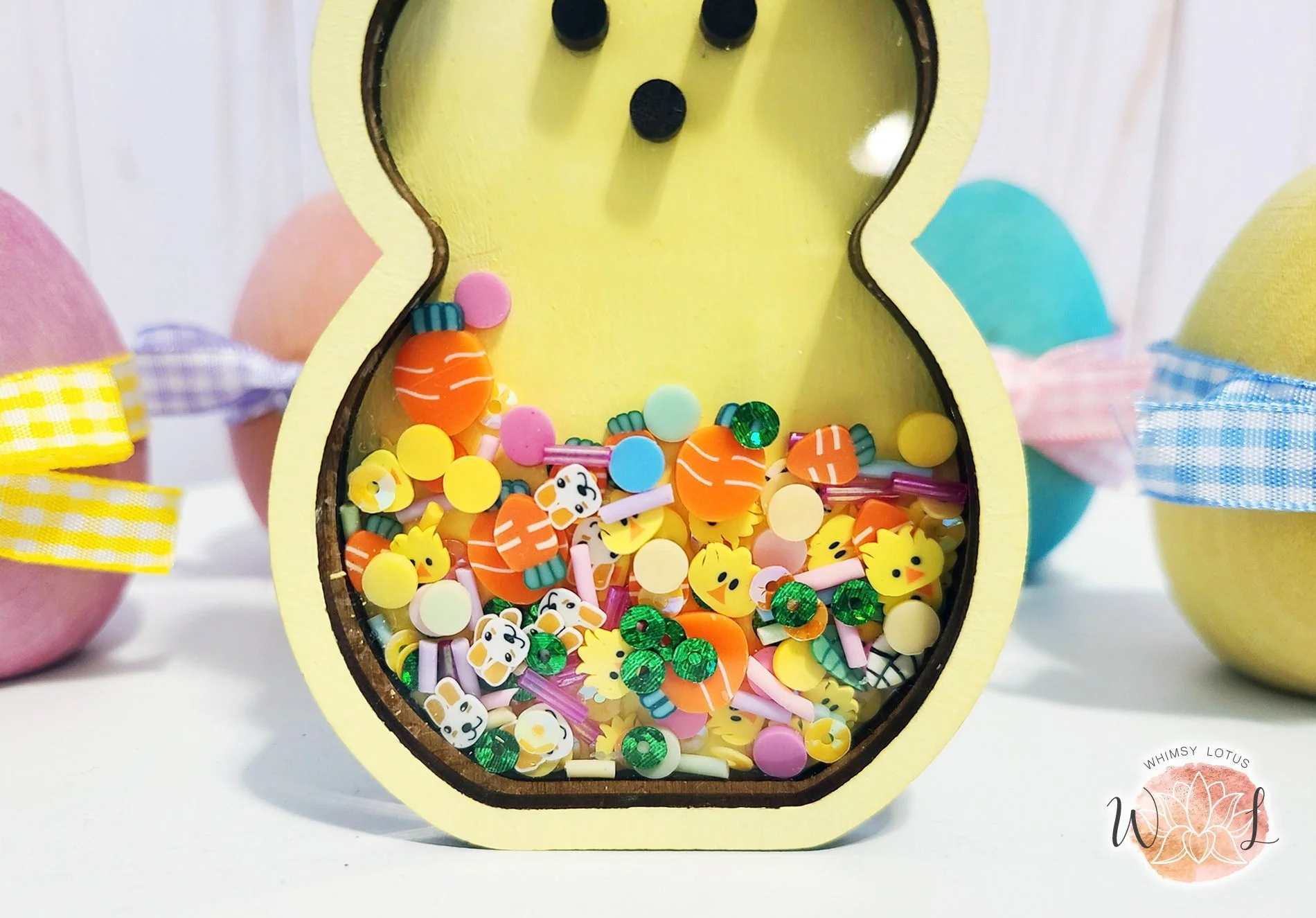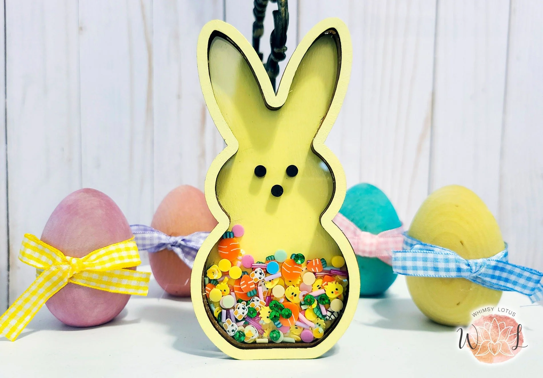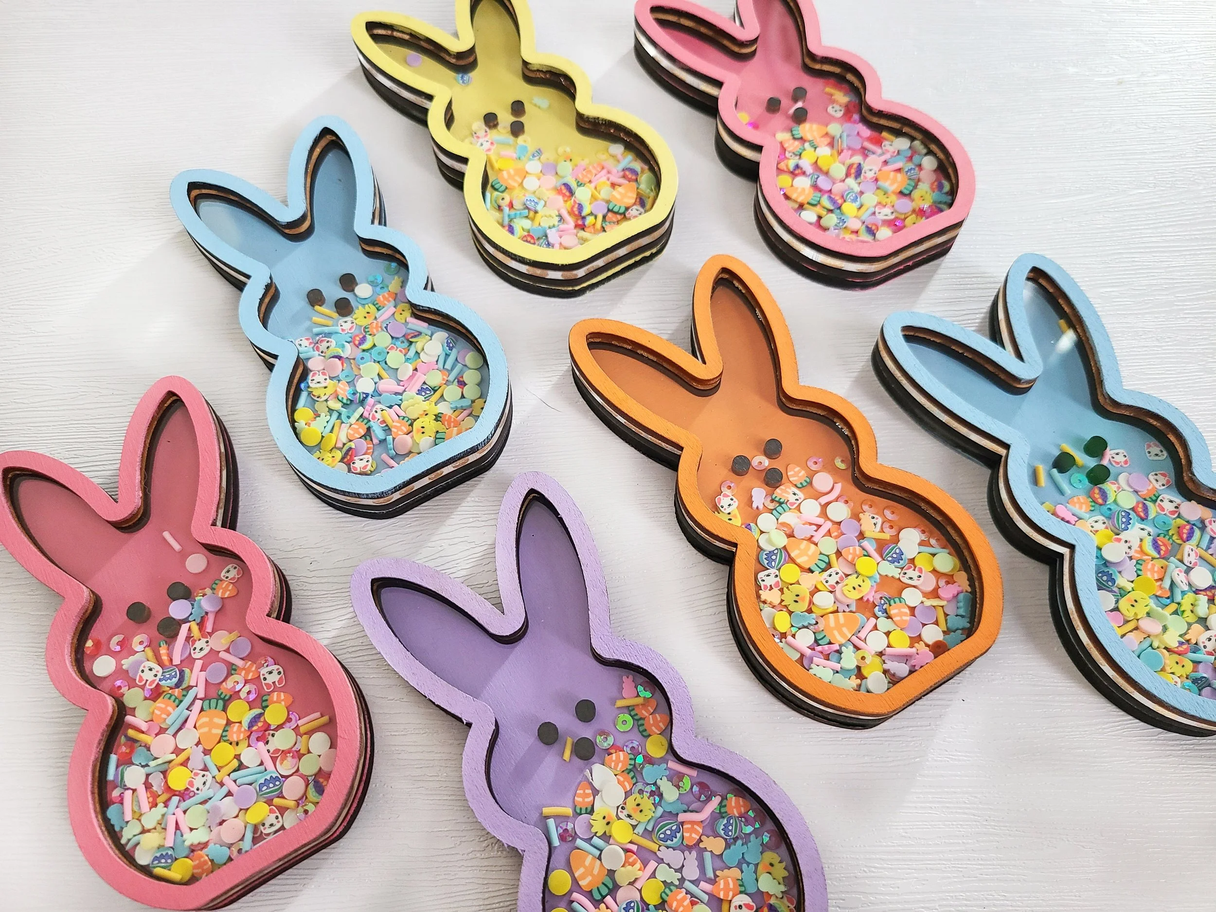 Featuring a cute bunny silhouette filled with colorful fake sprinkles and beads, this shaker sign creates a fun, interactive element that captures the joy of the season. Whether you're decorating for Easter, spring, or a housewarming gift, this sign brings a whimsical vibe to your home decor collection.
